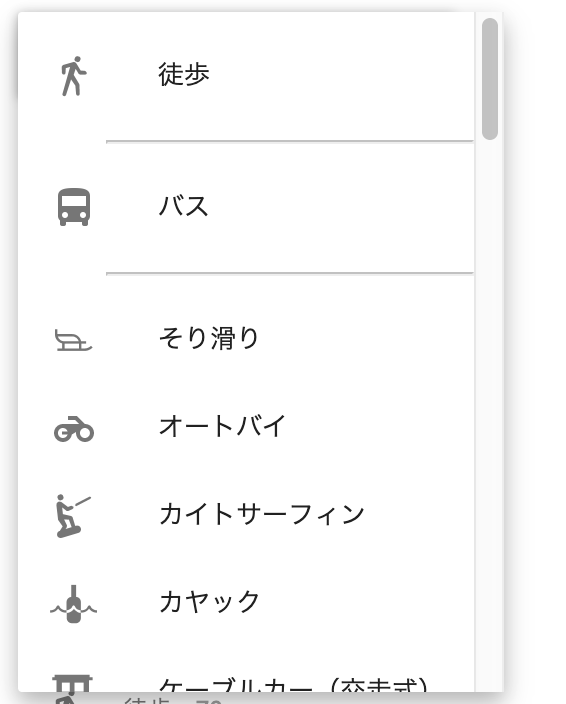 実際は徒歩で歩いたわけですが、他の移動手段だったらば「どのくらいの移動時間」を要していたのかの確認ができるのが Google Maps のユニークな使い方。ここでは参考まで選択肢のスクリーンショットを紹介。色々な手段はあるにせよ、アホか?!という選択肢も見受けられるがここでは割愛。