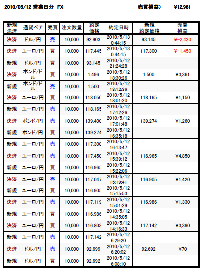 一昨日のような往って来い相場では無かったものの、1日1万円の収益を目標としているので結果は OK でした。