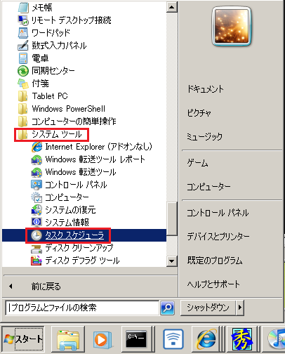 4.Windows アクセサリ – システムツール – タスク・スケジューラ を起動しましょう。