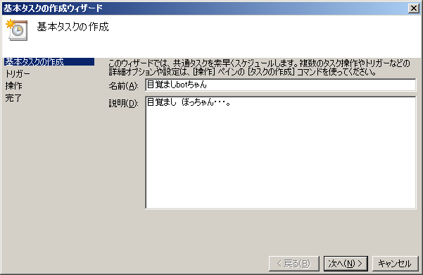 基本タスク名を付与しましょう。名前、説明は何でも構いません。