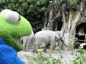 インド象を観ている「カーミットさん」