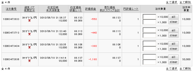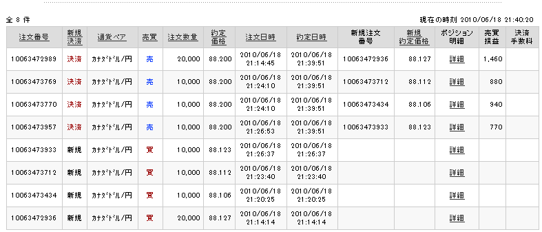本日21:30に対カナダ証券投資額 指標発表があり、直前に5万通貨購入し 88.20 で指値注文を入れておいた。