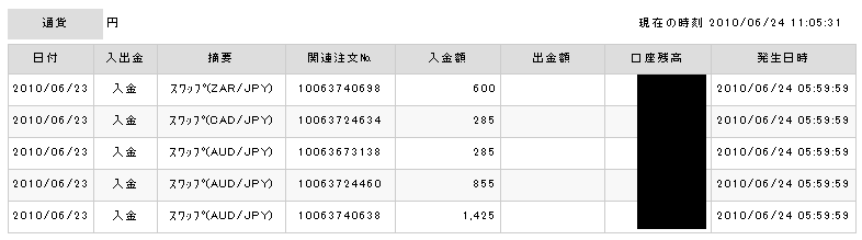今朝(昨日・営業日分)のスワップ金利収入は+¥3,450でした。