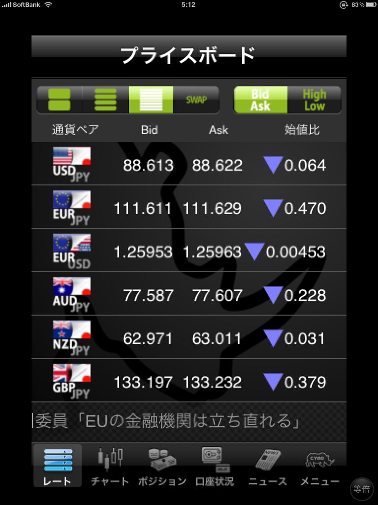 iPhone は持っていませんが、大画面 iPad でも iPhone アプリが動作することは知られた事実ですのでcymo からFX取引を試してみました。