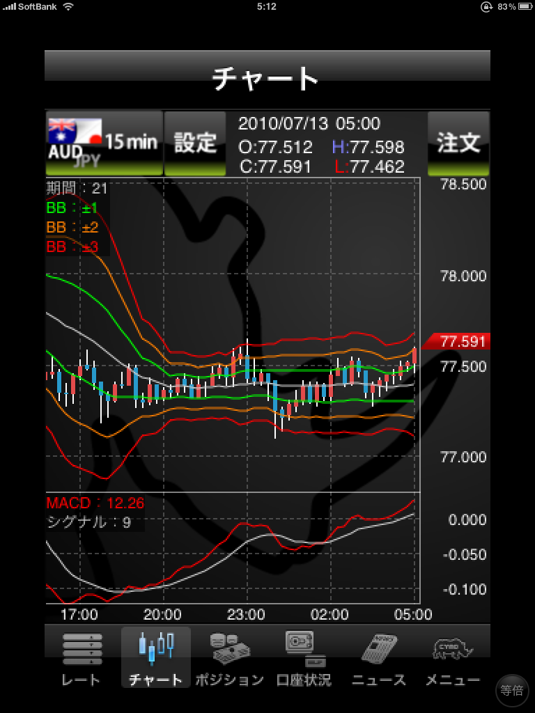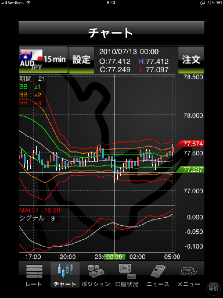 0, 1, 15, 2, 21, 3, 4, 77.097, 77.237, 77.249, 77.412, Apple, Auto, bb, Cymo, Draft, FX, iPad, iPhone, MACD, アップ, アプリ, いつ, お知らせ, クローズ, ここ, サイバーエージェント, サイモ, シグナル, シグマ, スマートフォン, スムーズ, タイム, どこ, ニュース, バージョン, バナー, バンド, プライス, ボード, ボタン, ボリンジャー, マーケット, マイナス, メイン, ライン, レート, 事実, 今回, 以上, 体験談, 便利, 先日, 利用, 動作, 午前, 反転, 取引, 受信, 口座, 合間, 向け, 売買, 変動, 始まり, 始値, 安値, 導入, 就寝時, 急落時, 指標, 操作, 早起き, 時間帯, 最近, 期待, 期間, 無料, 特性, 状況, 画面, 発注, 確認, 簡単, 紹介, 終値, 経済, 表示, 補助, 視認, 詳細, 誰, 足, 重宝, 重視, 開設, 高値