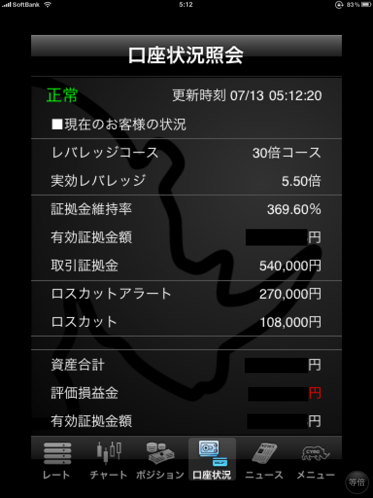 ■4.口座状況紹介も大画面で見やすく、これさえあれば、いつでもどこでも FX取引が行えることを確認しました。