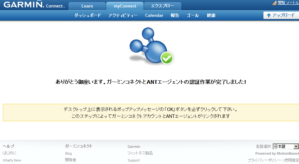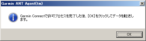 2.Garmin Connect で許可プロセスを完了するようにメッセージ。