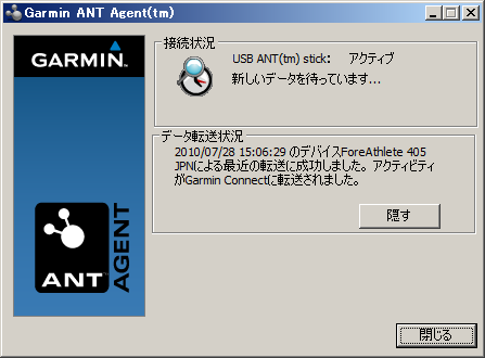 入手先: http://www.garmin.com/software/ANTAgent_2211.exe