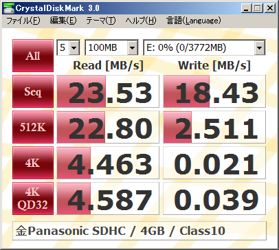 [IT] 金Pana RP-SDW04G SDHC 4GB / CrystalDiskMark 結果