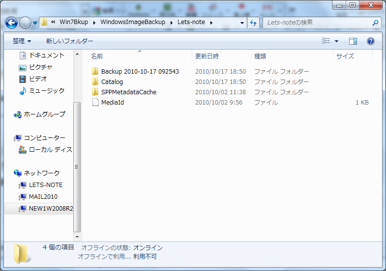 ローカルディスクにアタッチできない時は、ネットワーク・ストレージへバックアップも出来ますがバックアップに時間がかかってしまいます。通常はバックアップ先にフルバックアップしたイメージがあれば差分のみの追加となりますが、存在していなければフルバックアップを生成してしまうからです。またオリジンバックアップが一体それなのか混乱してしまわないように、 Windows 7 上ではバックアップ構成データを XML 定義したものを保持します。