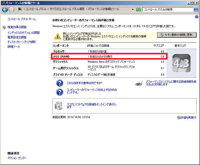 (前回の更新日 2010/10/02 メモリ・サブスコア 5.9 )