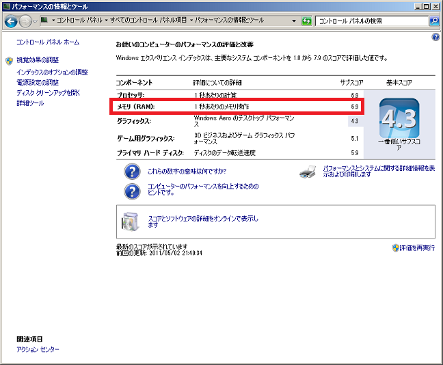 (前回の更新日 2011/05/02 メモリ・サブスコア 6.9 )