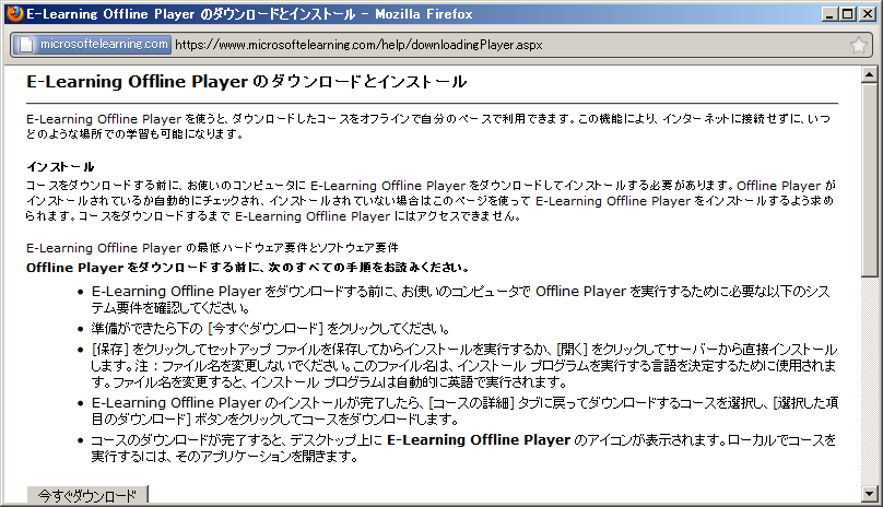 ■ Microsoft E-Learning Offline Player を最新版へ更新します。