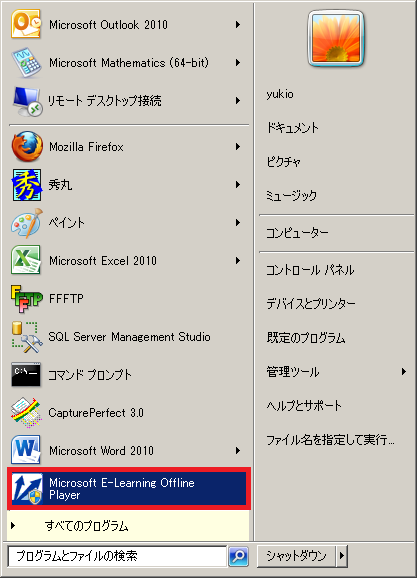 ■ローカル環境にインストールされた Microsoft E-Learning Offline Player を起動します。