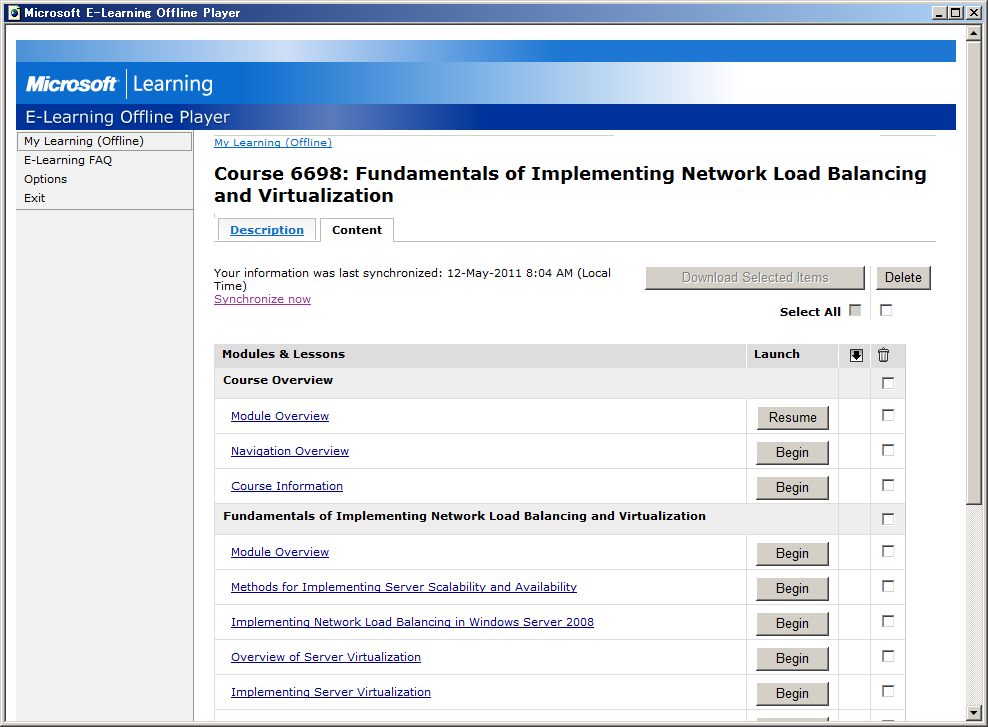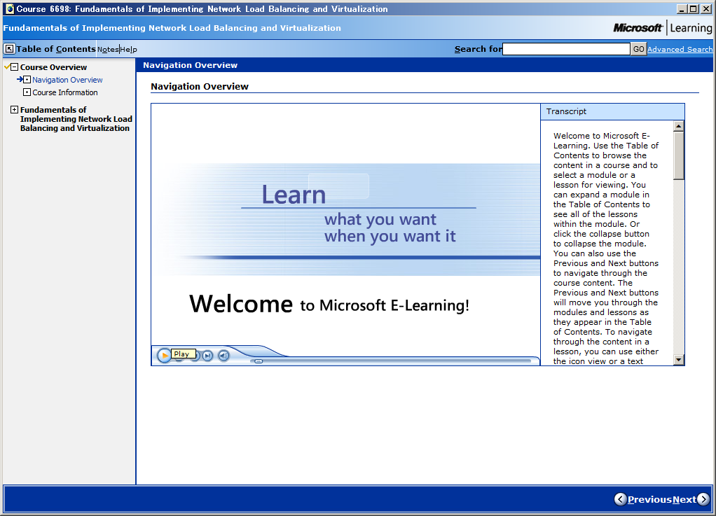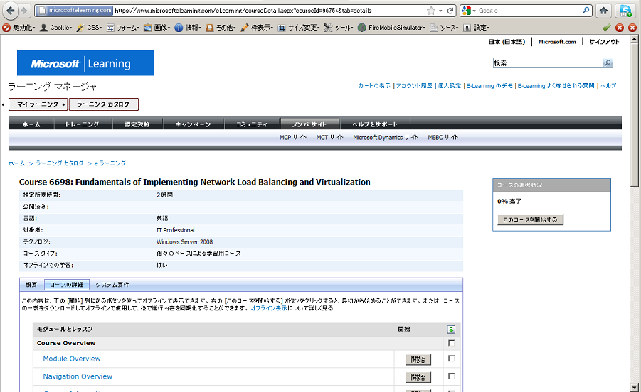 日本語コンテンツは少ないため、英語コンテンツで興味がある Course 6698: Fundamentals of Implementing Network Load Balancing and Virtualization (推定所要時間 2週間) を選択しました。
