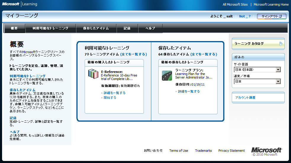 マイクロソフト認定資格やTechnet Subscription, MSDN Subscription などで利用できる eラーニングを試してみました。(パートナーラーニングとは異なります)