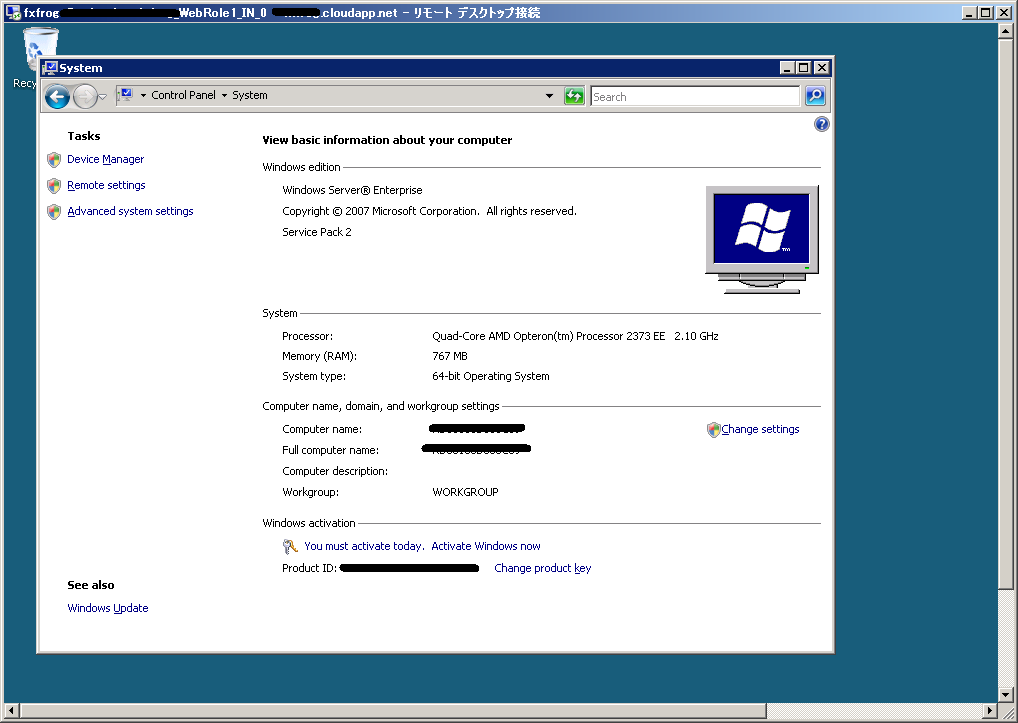 ■リモート デスクトップ接続情報: (RDP ファイルは Windows Azure 管理画面から入手可能)