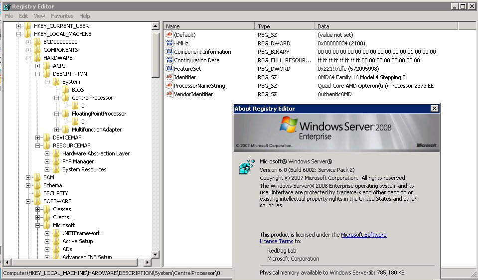 Windows Azure リモートデスクトップ環境でレジストリエディタを参照しました。