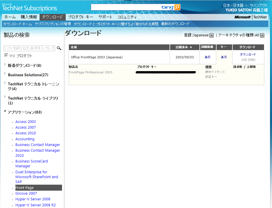 とある検証で、Office FrontPage 2003 (Japanese)が必要となりライセンス含めた入手相談がやってきた。