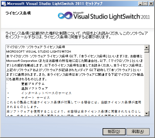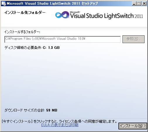 ■よし、 Microsoft Visual Studio LightSwitch 製品版セットアップするよ。