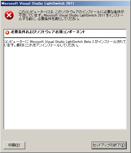 ■Microsoft Visual Studio LightSwitch Beta 2が入っている(だけでなくアプリ開発も行っている)環境へそのまま製品版(MSDN版、評価版含む)を導入しようとすると・・・