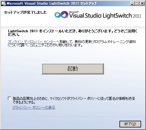 オンライン デベロッパーセンター http://msdn.microsoft.com/ja-jp/lightswitch/default.aspx