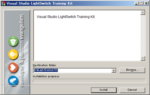 デフォルトでは、C:LightSwitchTK へ格納されます。ここで Install をクリックします。