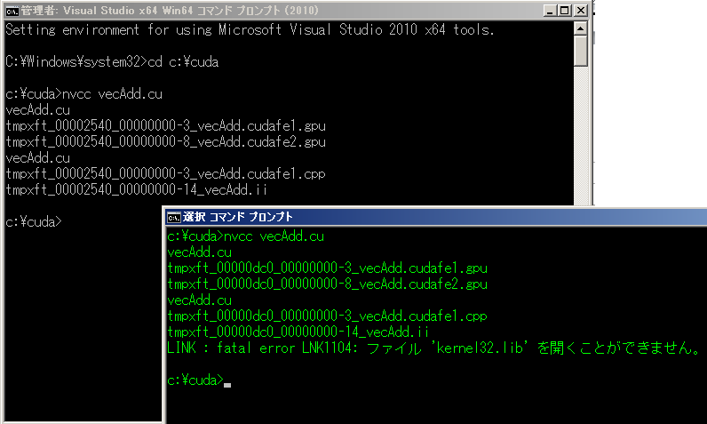 シナリオ: cuda コンパイラ nvcc を使用してコンパイルに失敗したなど。