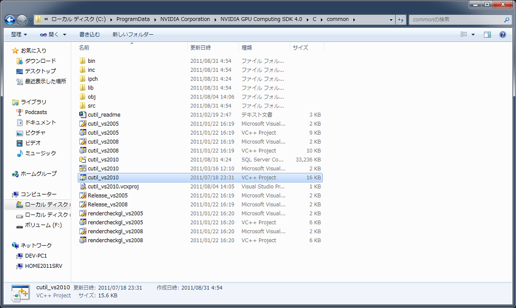 C:ProgramDataNVIDIA CorporationNVIDIA GPU Computing SDK 4.0Ccommon にビルドするための VSソリューションファイルが同梱されています。
