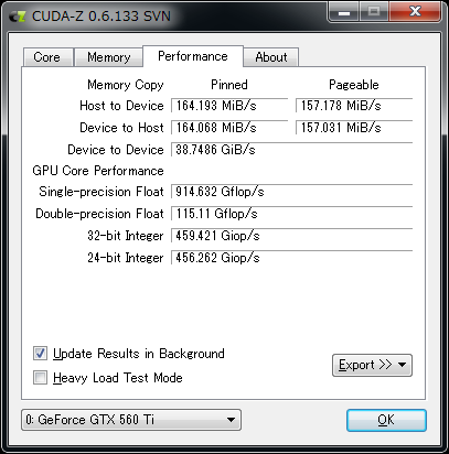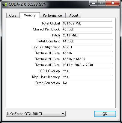 ソースフォージに CUDA-Z が GPU の性能テストを行うユーティリティであると見かけましたので、さっそく導入してみました。