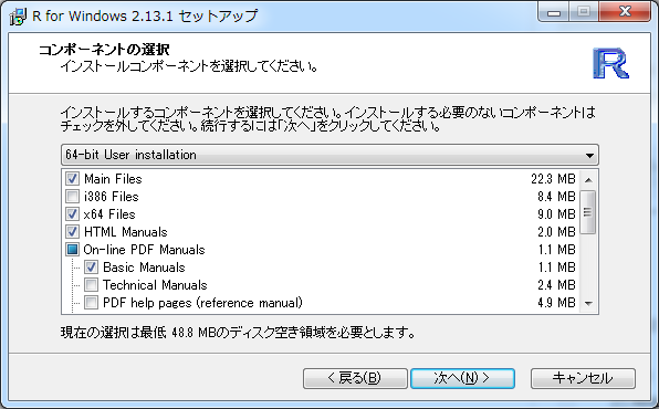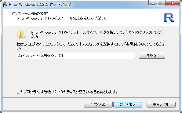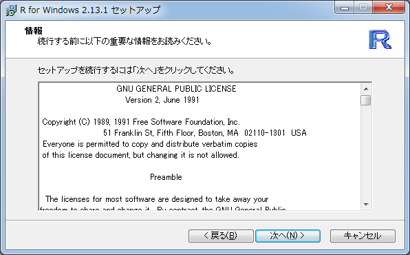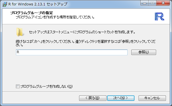 ■3.R for Windows 2.13.1 セットアップウィザードの開始