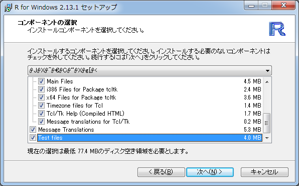 フルパッケージインストール(最低 77.4 MBのディスク空き容量を必要とします。)