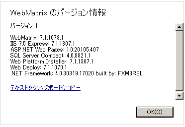 2012/02/09 現在、Windows 7 x64 Professional 環境で WebMatrix バージョンはこのようになりました。
