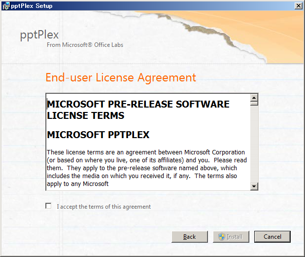 入手した pptPlexSetup.msi を管理者権限でダブルクリックします。(ものの20秒あればインストール完了)