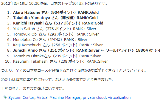 MSKK 安納さんのブログに【MVA】日本語で受講できるオンラインコンテンツ一覧(2012.3.19 現在)によると、
