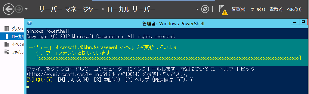— このコマンドレットを含むモジュールのヘルプ ファイルをダウンロードしてインストールするには、Update-Help を使用してください。