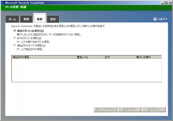 使用ソフト:Microsoft Security Essentials (マイクロソフト・セキュリティ・エッセンシャルズ)