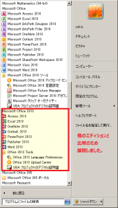 他のエディションと比較のため展開しました。ここでは、Office 365, Office 2010 が既にインストール済み環境です(いずれも x64 / 64ビット版)。