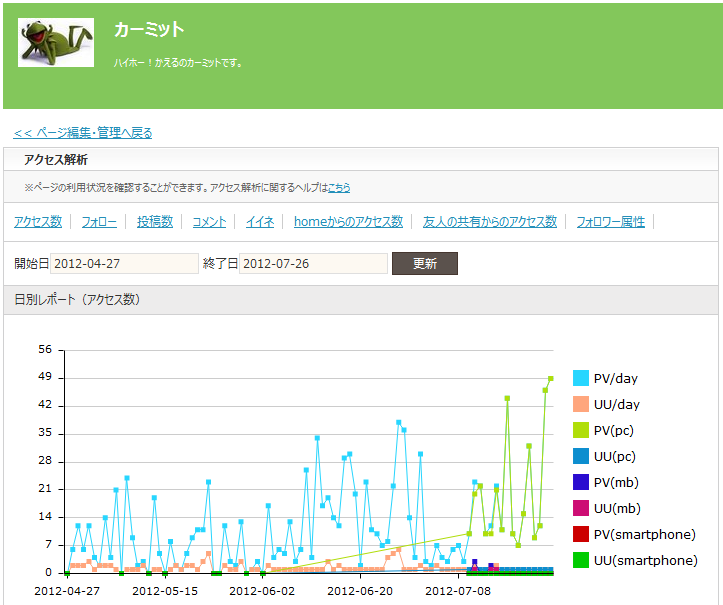 [IT] mixi ページのアクセス解析例 (最大期間は過去91日分)