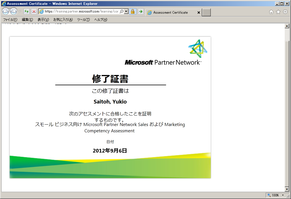 (チャレンジするには マイクロソフト・パートナー・ネットワーク MPN アカウントが必要です)