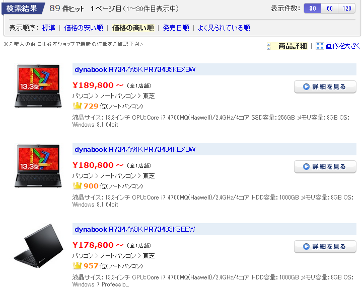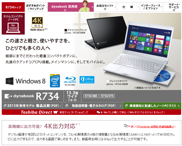 同じ買うなら、安くて保証期間が長いものを、との考えで。 === ■ http://dynabook.com/pc/catalog/dynabook/131118r734/ での第一訴求