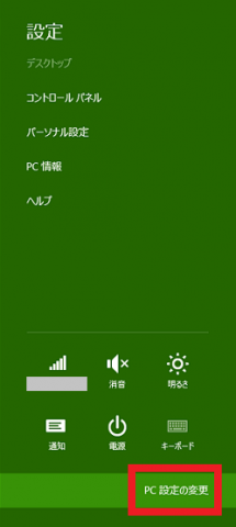 ■設定ペインのボトム「PC設定の変更] を選択。