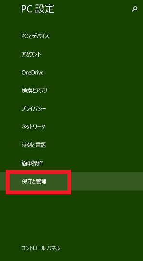 ■PC設定ペイン「保守と管理」を選択。