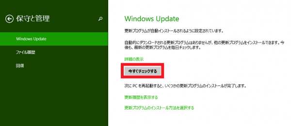 ■保守と管理ペイン「Windows Update」を選択。