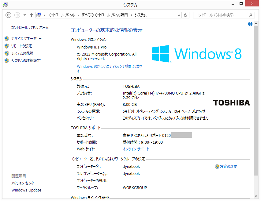 東芝 dynabook R734 マシン (Windows 8.1 Pro) を Windows 8.1 Pro Update しました。