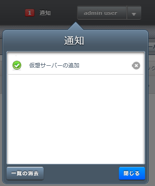 ■7. 通知内容がグリーンとなり、仮想サーバーが作成(追加)されたことを知る。ここまで、3分ちょい。