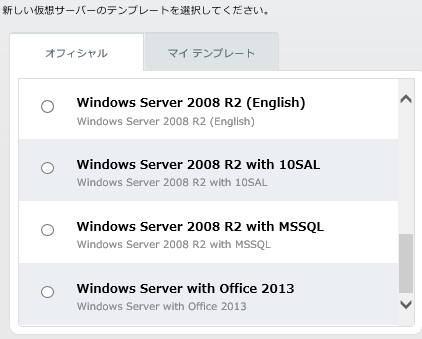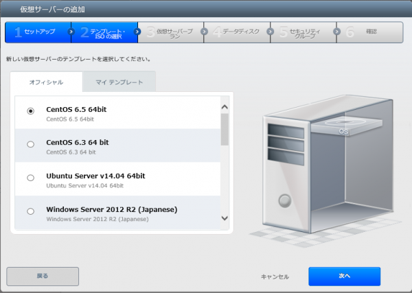 ■4. オフィシャルテンプレートから、ここでは CentOS 6.5 64bit を選択。