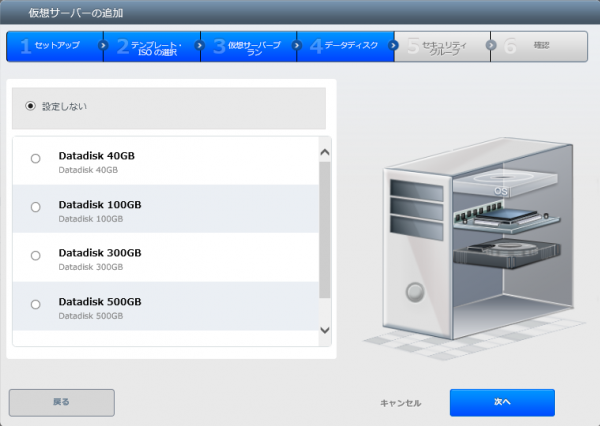 データディスク(追加ディスク)なしで構わない。OS ディスクとは別。必要になったらデータディスクを追加すればいいし、これから利用する構成によっては、ディスクではなくオブジェクトストレージかもしれないし、最初から、あれもこれもと盛り込むと、課金されて勿体ない。スモールスタート、使わなくなったら、すぐに削除。これで予算管理も問題ナッシング。