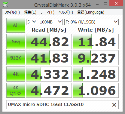 [IoT] UMAX micro SDHC Card 16GB CLASS10 ベンチマーク