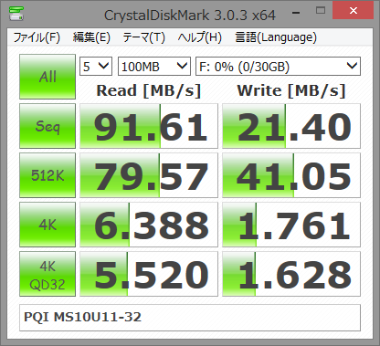 [IoT] pqi MicroSDHC 32GB (MS10U11-32) ベンチマーク
